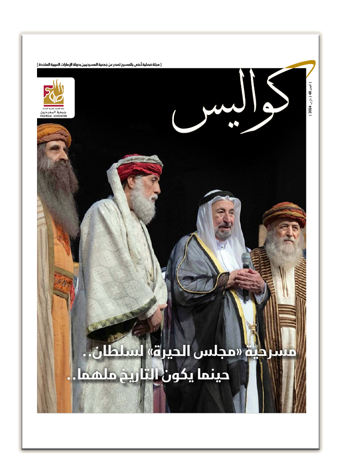 صدور العدد (49) من مجلة كواليس والعدد الإلكتروني الأول للمجلة بعد ما يقارب ثلاثة عقود من الزمن الورقي، ارتأت أسرة تحرير مجلة كواليس، والتي تصدر عن جمعية المسرحيين في الإمارات، أن تتحول في صدورها وبدءا من العدد (49) إلى الصيغة الإلكترونية. وتأتي هذه الخطوة لمواكبة التحولات الرقمية في مجال النشر الثقافي، وتلبية لاحتياجات القرّاء والمهتمين بالمسرح، خاصة مع الانتشار الواسع للمنصات الإلكترونية وسهولة الوصول إليها. وتحمل المجلة في نسختها الإلكترونية رؤية جديدة تمنح تجربة قراءة أكثر انفتاحًا وثراءً. وتؤكد هيئة التحرير أن الانتقال من الورقي إلى الإلكتروني لا يلغي أصالة المجلة ولا يغيّب تاريخها، بل يضيف بعدًا عصريًا يضمن استمراريتها وانتشارها بين أجيال جديدة من المسرحيين والجمهور. وضم العدد الجديد العديد من المقالات والبحوث والدراسات والمسرحية، التي ترتبط بالراهن المسرحي الخليجي والعربي والعالمي. وخصص رئيس جمعية المسرحيين، الكاتب إسماعيل عبدالله، عموده الافتتاحي للمجلة، بتوجيه الشكر لصاحب السمو الشيخ الدكتور سلطان بن محمد القاسمي عضو المجلس الأعلى حاكم الشارقة على ما يقدمه سموه من مبادرات عظيمة ارتقت بالعمل المسرحي وحركت الساكن في المشهد المسرحي الإماراتي والخليجي والعربي، وعلى وجه الخصوص مبادرة سموه بتخصيص مقر جديد لجمعية المسرحيين، حيث جاء فيها: "هو سلطان المسرح ونبيله، صاحب السمو حاكم الشارقة، بركات عطاياه زعزعت الساكن في مسرحنا المحلي والخليجي والعربي، واليوم يختار سموه أن يمضي ركب جمعية المسرحيين في دروب الرفعة، حين أمر سموه بمقر جديد لجمعية المسرحيين، يتسع لحلم المسرحيين والقائمين عليها، وبريع مستدام أهداه أجنحة يرقى بها حراً نحو الفضاءات المغايرة". واستذكر مدير تحرير المجلة، الدكتور حبيب غلوم، في عموده المسرحي السوداني الراحل يحيى الحاج، حينما تحدث عن أثره الكبير في المشهد المسرحي المحلي، وجاء فيه: "لم أجد طيلة حياتي الفنية قرابة 45 سنة متيما بالمسرح مثل الحاج، بقلب نظيف وعقلية منفتحة على الآخر ومحبة تسع الجميع، اذا حضر أصبح المسرح حديث الجلسة بما يخبرنا به من حكايات وتجارب مر بها شخصياً أو لكبار المسرحيين". وضم العدد الجديد عددا من الدراسات المسرحية المهمة، لأقلام مسرحية عربية مهمة، منهم: حبيب ظاهر حبيب وعلي العبادي من العراق، وعبدالفتاح صبري وإبراهيم الحسيني ووسام أسامة من مصر، والدكتورة ميسون علي وعبدالناصر حسو وغنوة فضة من سوريا، والدكتور وليد الألفي من السودان، والدكتور مصطفى الرمضاني والدكتور لعزيز محمد من المغرب، وعلي عليان من الأردن، والدكتور حاتم التليلي محمودي من تونس، والحسام محيي الدين من لبنان.